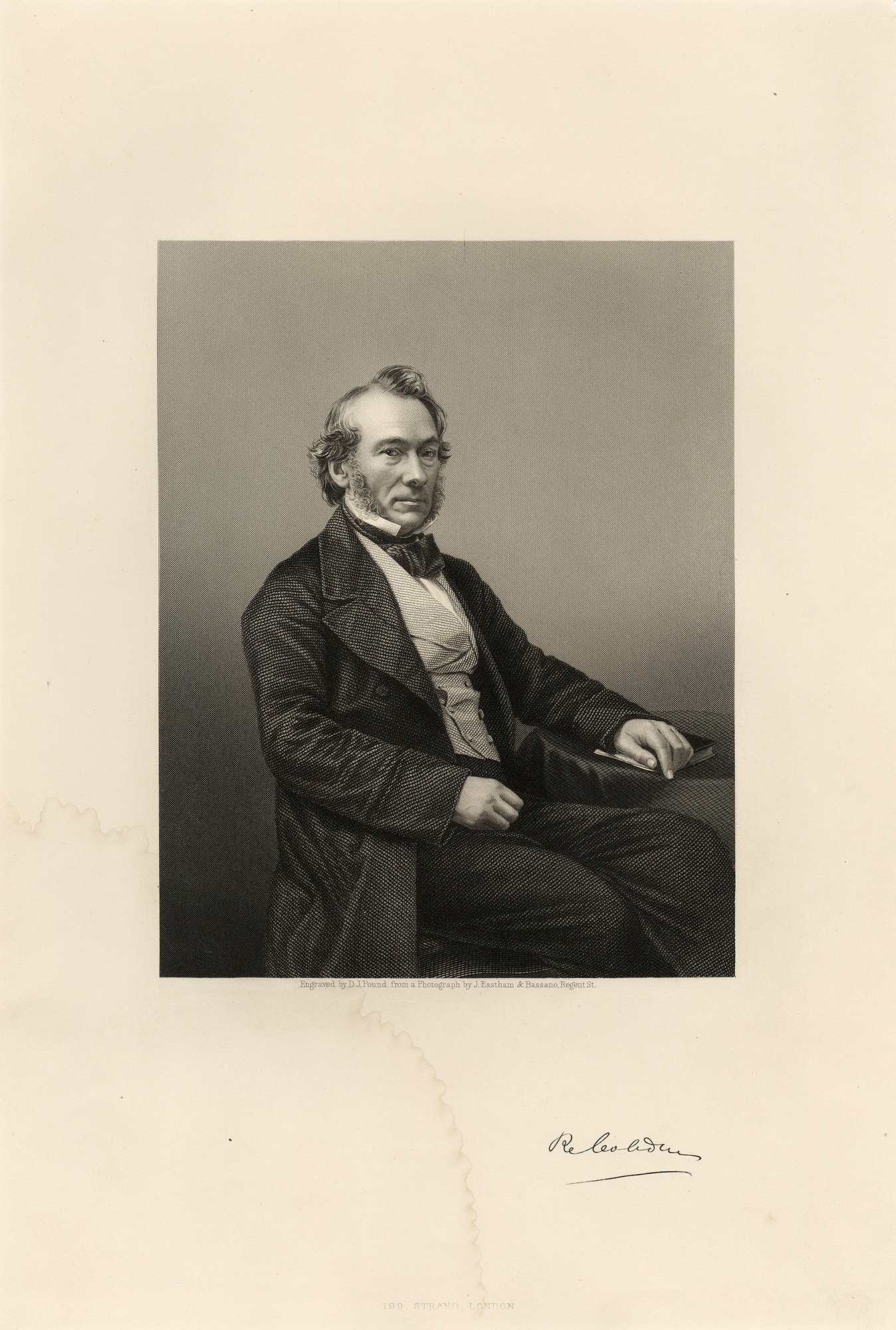 Antique Portrait Print-Richard Cobden-English statesman-Pound-Mayall-1860