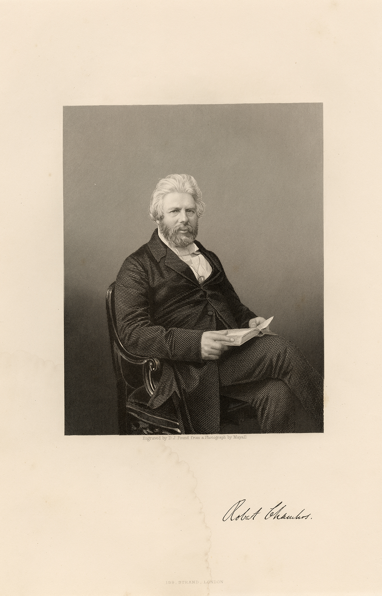 Antique Portrait Print-Robert Chambers-Author and publisher-Pound-Mayall-1860