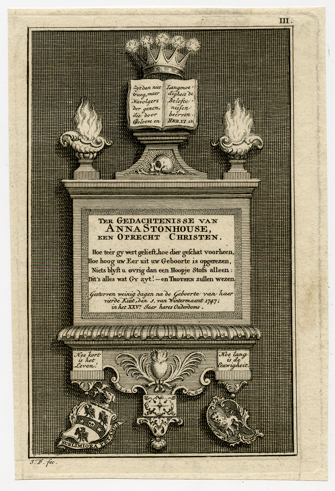 Antique Print-FUNERAL-MONUMENT-ANNA STONHOUSE-Fokke-ca. 1747